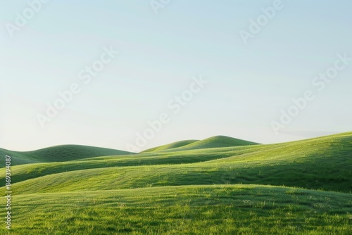 Naklejka premium A serene landscape depicting gentle rolling hills under a clear blue sky,...