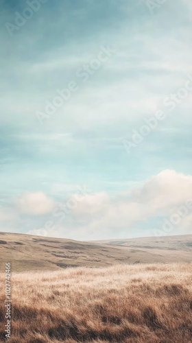 Fototapeta premium A serene landscape featuring gentle hills and a vast blue sky, perfect for...