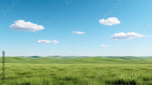 Fototapeta premium A serene landscape featuring green grass and a clear blue sky.