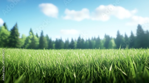 Naklejka premium A serene landscape featuring lush green grass under a bright sky, perfect for...
