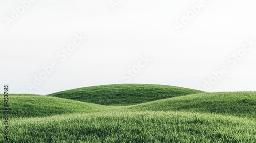 Naklejka premium A serene landscape featuring rolling green hills under a pale sky, evoking...