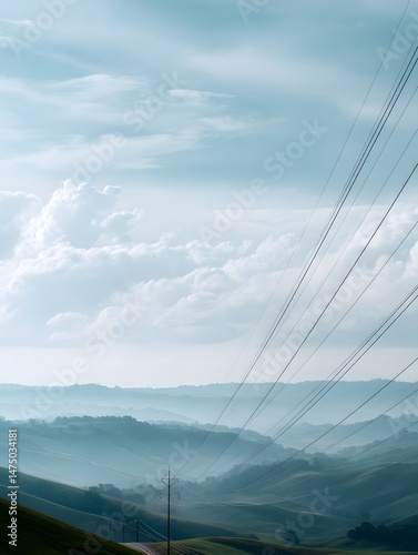 Obraz premium A serene landscape featuring rolling hills and soft clouds, evoking...