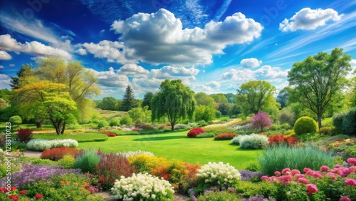 Fototapeta premium A serene landscape with a clear blue sky and fluffy white clouds