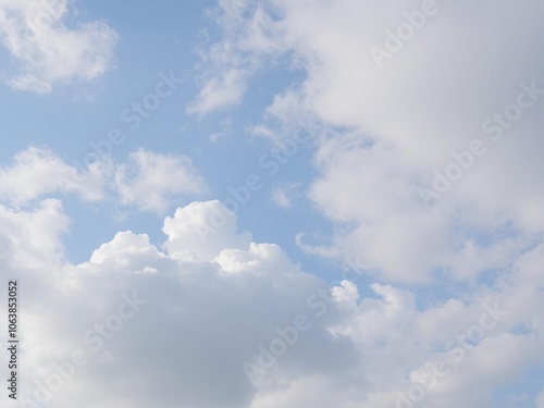 Fototapeta premium A serene landscape with fluffy white clouds covering a clear blue sky, outdoors, soft