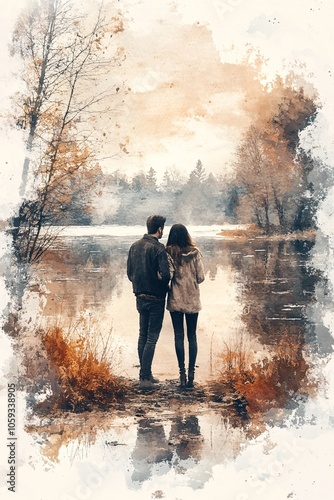 © Nature's beauty, Fototapeta premium A serene moment by the water capturing the connection between two souls in nature's embrace