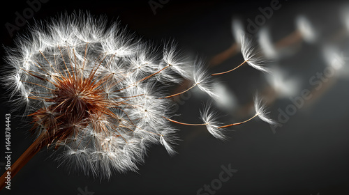 Fototapeta premium A Serene Moment: Captivating Image of Dandelion Seeds Caught in the Gentle Wind Offering a Touch of Nature's Elegance and Tranquility to Any Space or Creative Project