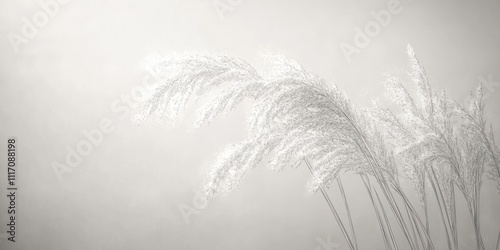 © DZIKRA , Obraz premium A serene monochrome image of delicate pampas grass against a soft background.