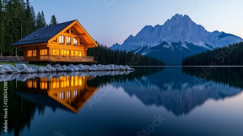 © NNA STOCK, Fototapeta premium A serene mountain lake at sunset in Lake Bled Slovenia