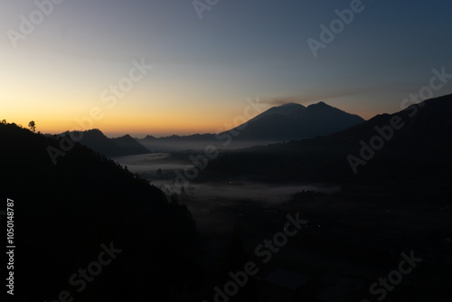 Fototapeta premium A serene mountain landscape at dawn with misty valleys.