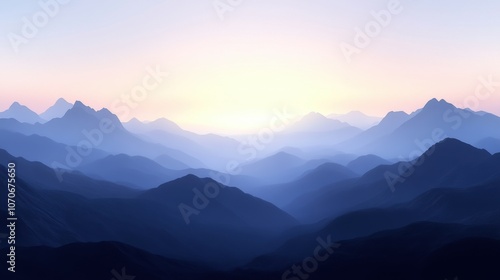 Obraz premium A serene mountain landscape at dawn, with soft hues of blue and pink...
