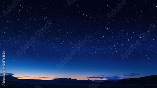 Fototapeta premium A serene night sky filled with shimmering stars and a gradient of deep blue to soft orange, creating a tranquil ambiance in the wilderness.
