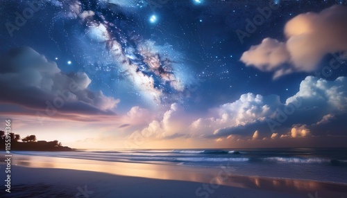 Fototapeta premium a serene night sky full of stars and tender clouds developing a peaceful and...