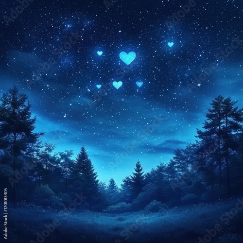 Fototapeta premium A serene night sky with glowing hearts.