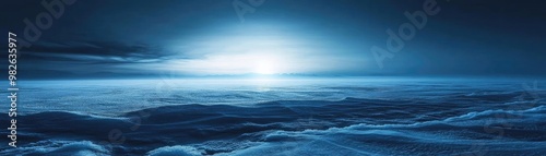 Fototapeta premium A serene ocean landscape at dawn, showcasing soft blue hues and gentle waves...
