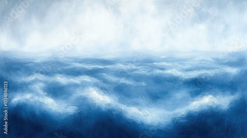 Fototapeta premium A serene ocean scene features gentle waves under a hazy sky, creating a...