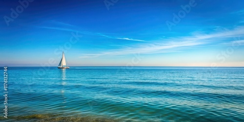 Obraz premium A serene ocean scene with a clear blue sky and sailboat on horizon, outdoor,...
