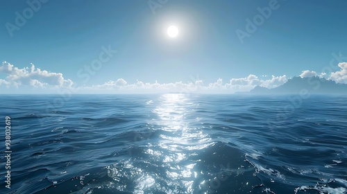 Fototapeta premium A serene ocean view under a bright sun, reflecting light on calm waters.