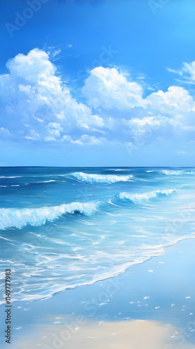 Obraz premium A serene ocean view with gentle waves and a bright blue sky, evoking...