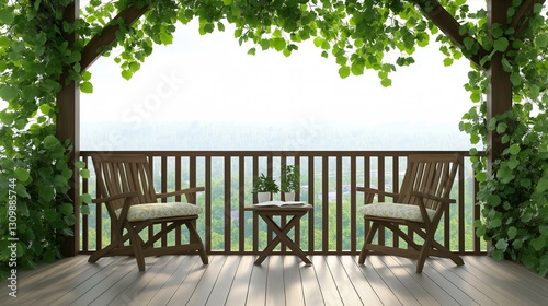 © Inner peace_2025, Obraz premium A serene outdoor study area under a pergola with vines , High quality , No blur