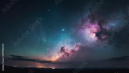 © Vladyslav, Fototapeta premium A serene, pastel-colored nebula spreading across the night sky