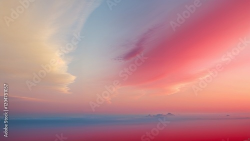 © JohnDesignHub, Fototapeta premium A serene pastel sky with artistic swirls evokes calm and peace.