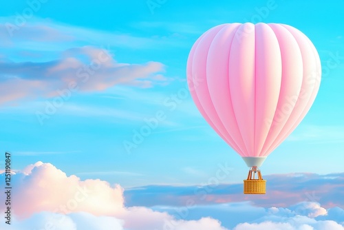 © Alyssa Studio, Fototapeta premium A serene pink hot air balloon in the sky.
