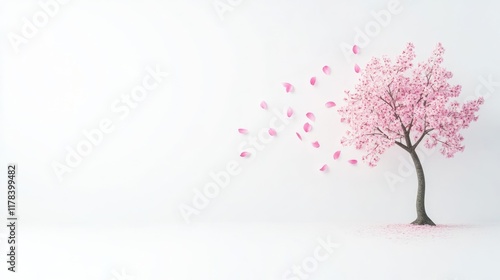 Fototapeta premium A serene pink tree shedding blossoms in a minimalist setting.