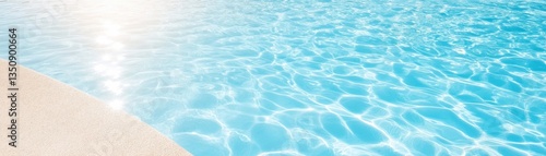 © nattapon98, Obraz premium A serene pool scene with shimmering blue water and a sandy edge, reflecting sunlight, creating a tranquil atmosphere.