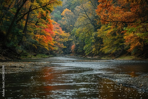 Obraz premium A serene river flowing through a dense forest. Ideal for nature and travel...