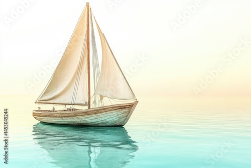 © Thedinindu, Fototapeta premium A serene sailboat glides across calm, turquoise waters under a soft, pastel sky.