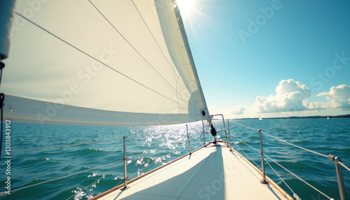 Obraz premium A serene sailing experience with the sun shining, white sails billowing, and...