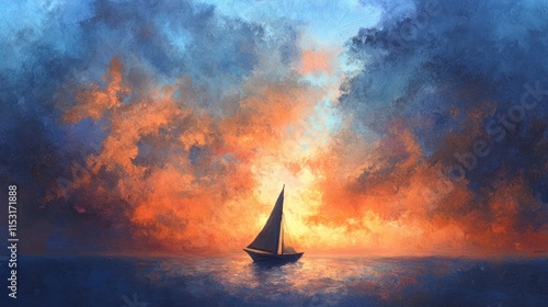 © Bimha, Fototapeta premium A serene sailing scene at sunset with vibrant colors illuminating the sky.