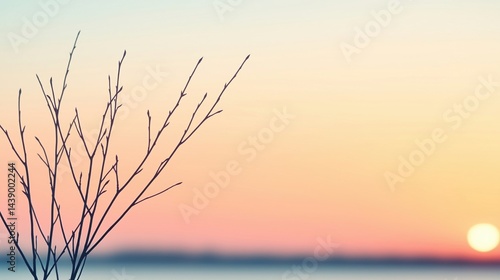 Fototapeta premium A serene scene featuring a silhouetted branch against a soft, colorful sunset...