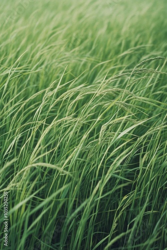 © Vii, Obraz premium A serene scene of a lush green grass field with a clear blue sky in the background, perfect for outdoor or nature-themed projects