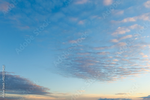 Fototapeta premium A serene sky scene with gentle pastel clouds illuminated by warm evening...
