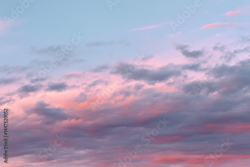 Obraz premium A serene sky with pink and blue clouds at sunset, creating a peaceful and...