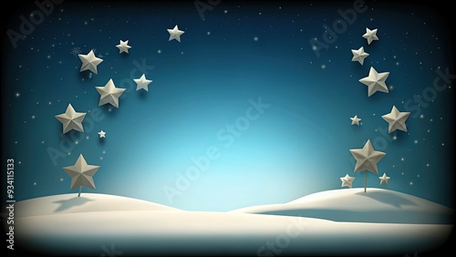 © lovetnihouse, Naklejka premium A serene snowy landscape under a sky filled with shining stars.