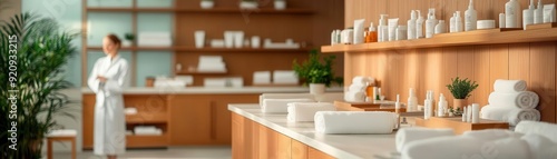 Fototapeta premium A serene spa interior featuring a tranquil environment and wellness products...
