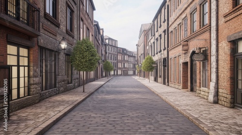 Fototapeta premium A serene street view featuring classic architecture and charming stone...