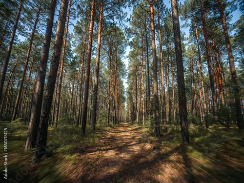 © LoFi J., Fototapeta premium A Serene Stroll Through the Forest. Capturing the Tranquility of a Pine TreeLined Path.