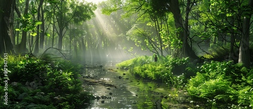 Fototapeta premium A serene summer morning in a lush green forest