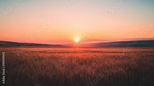 Obraz premium A serene sunset over a golden wheat field, evoking tranquility.