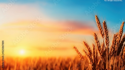 © pawin, Fototapeta premium A serene sunset over a golden wheat field, showcasing nature's beauty and tranquility.