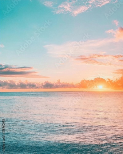 Fototapeta premium A serene sunset over calm ocean waters, creating a tranquil atmosphere.