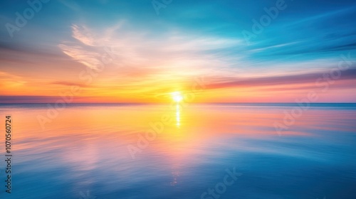 Obraz premium A serene sunset over calm waters, blending vibrant colors in a tranquil...