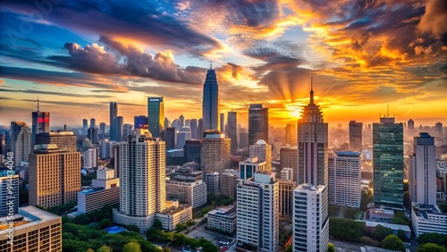 © Sanook, Obraz premium A Serene Sunset Over the City Skyline AI generated