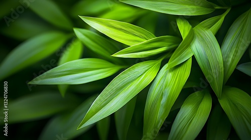 © Pter, Obraz premium A Serene Symphony of Vibrant Green Leaves in a Natural Pattern for a Tranquil Botanical Escape