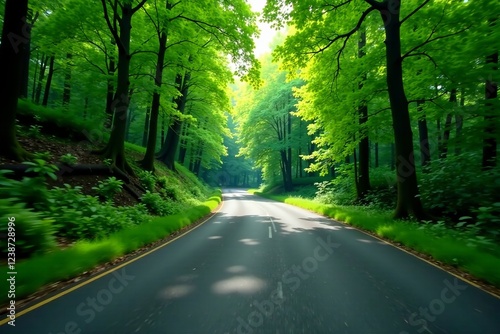 Fototapeta premium A serene tree-lined road inviting peaceful journeys through lush greenery.