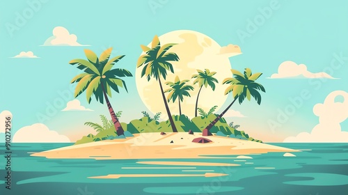 Obraz premium A serene tropical island with palm trees and a sandy beach under a bright...
