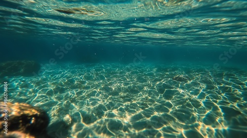 Fototapeta premium A serene underwater scene showcasing crystal clear water, soft waves, and...